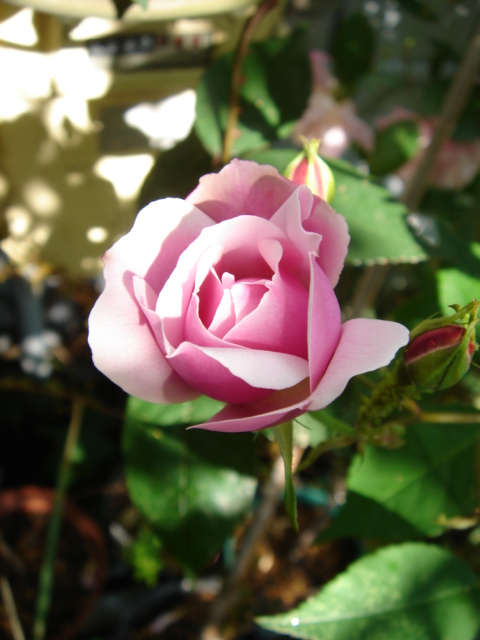 ←咲きかけのチャイナローズ。『オールド・ブラッシュ』