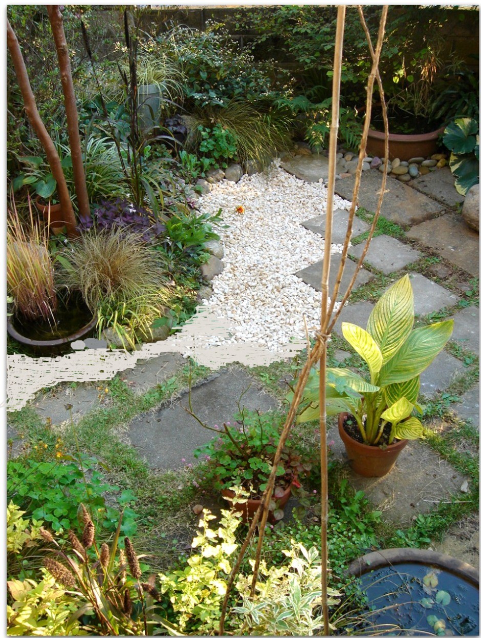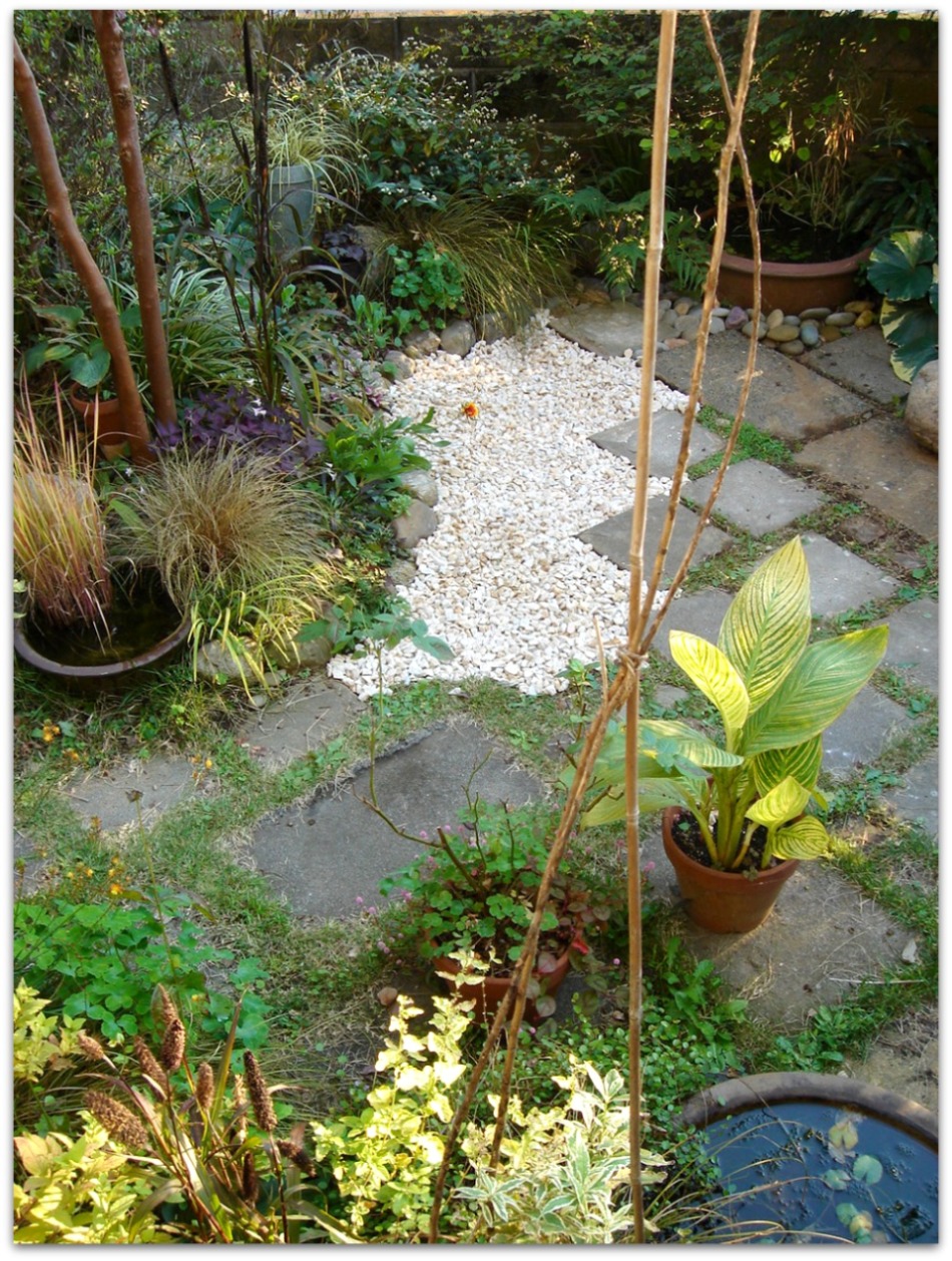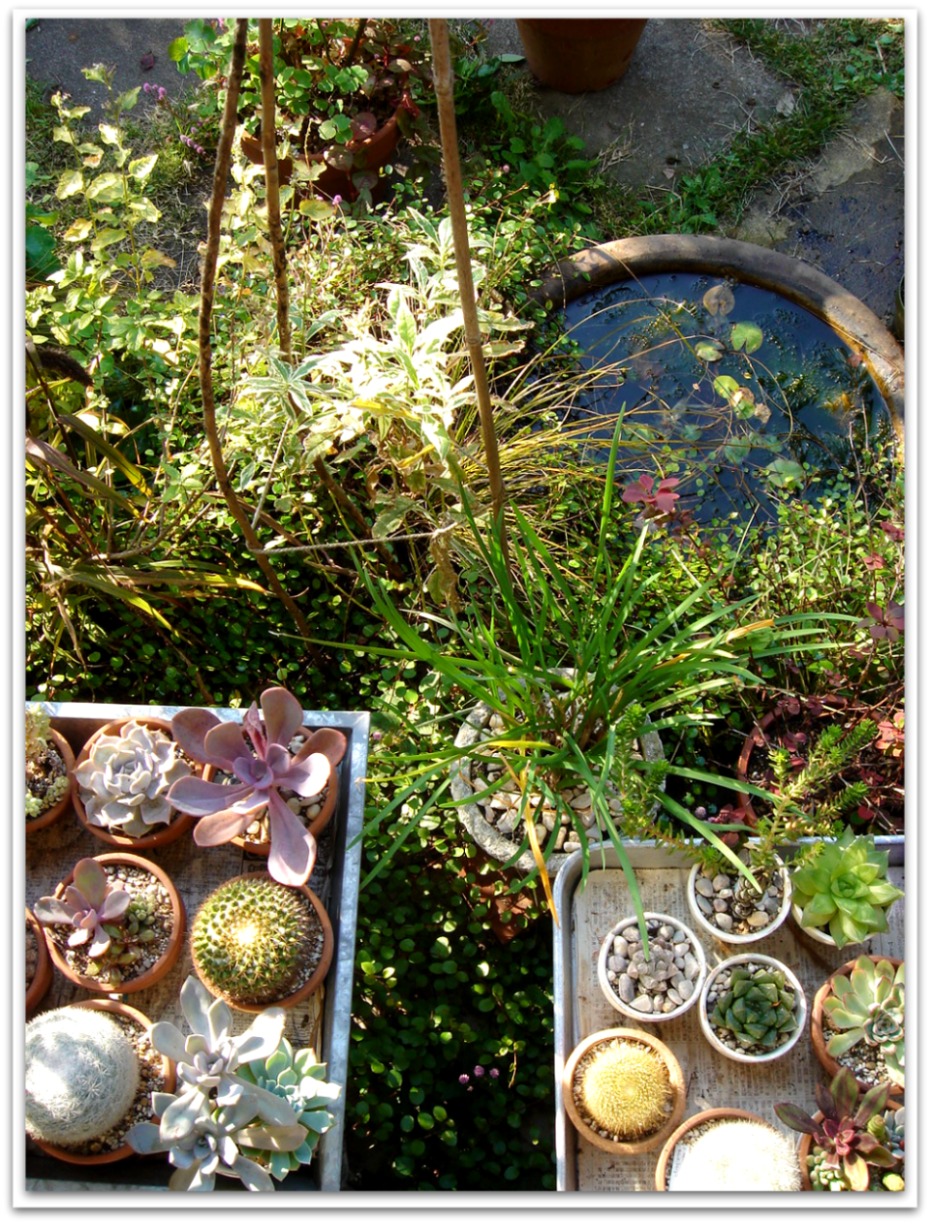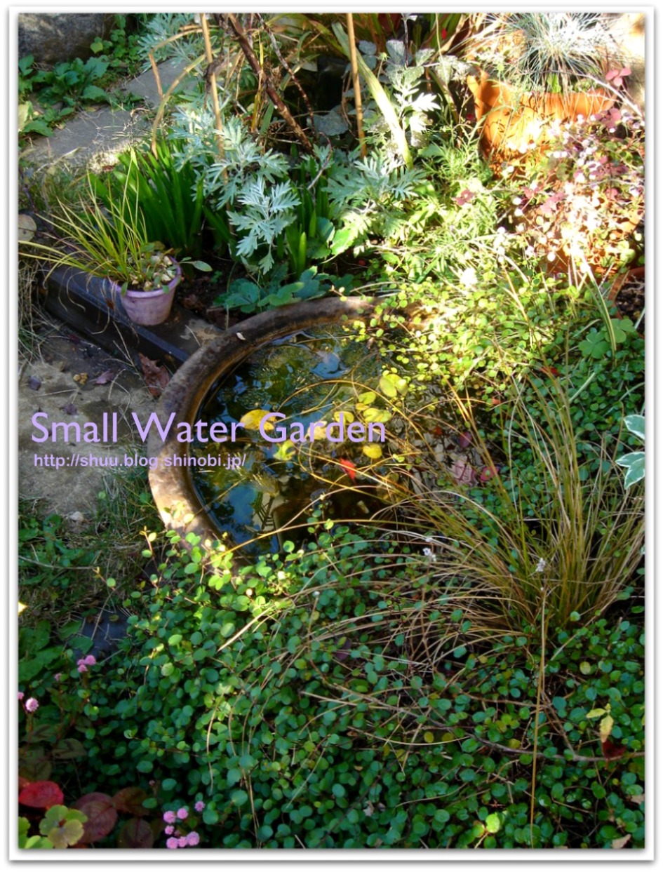 →家側の、日当たりの「睡蓮鉢」周辺。