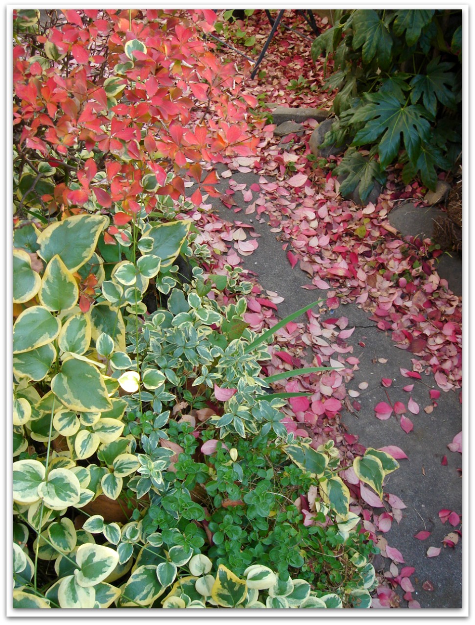 葉っぱなのに、ピンクの花びらの絨毯みたいになります。うっとり。(掃除しろ?)