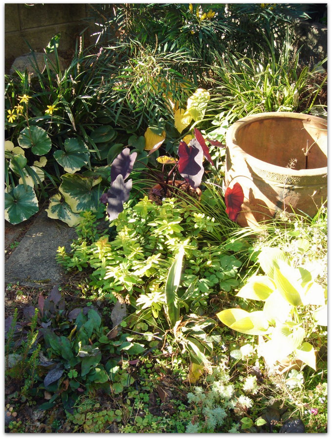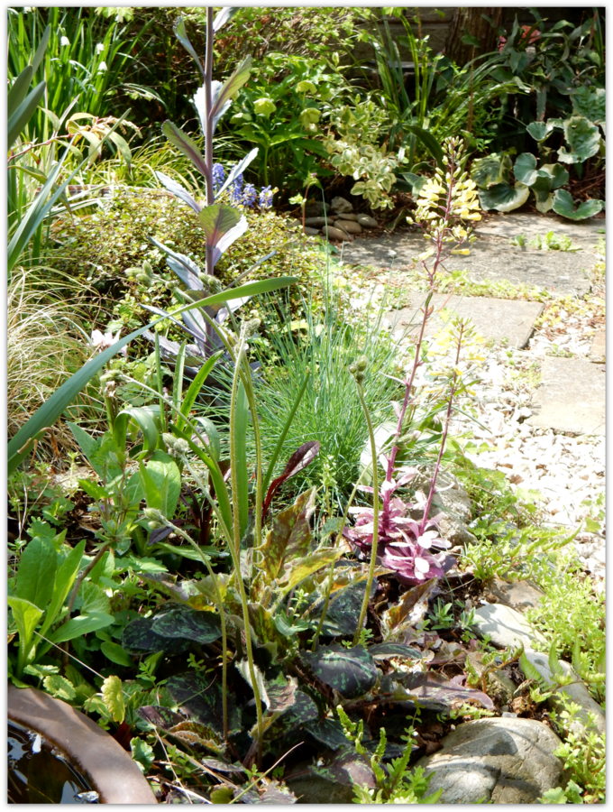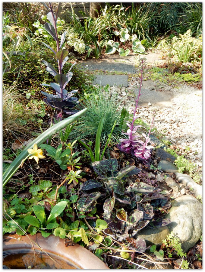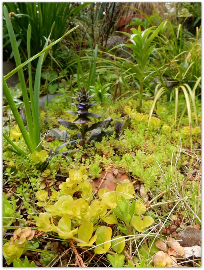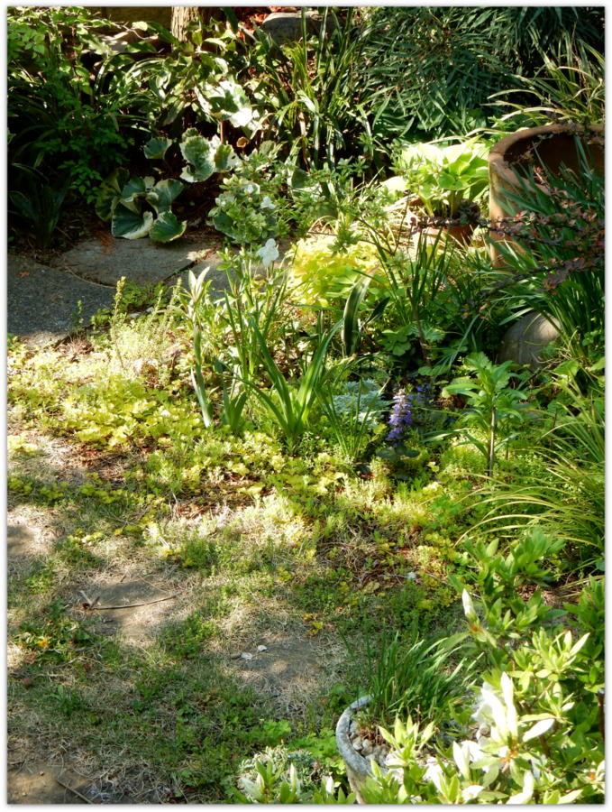 様々なグランドカバープランツが、モジャモジャと勢力争いしている中、