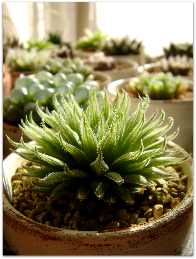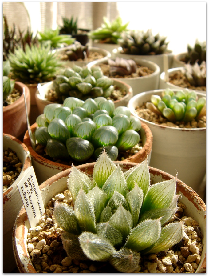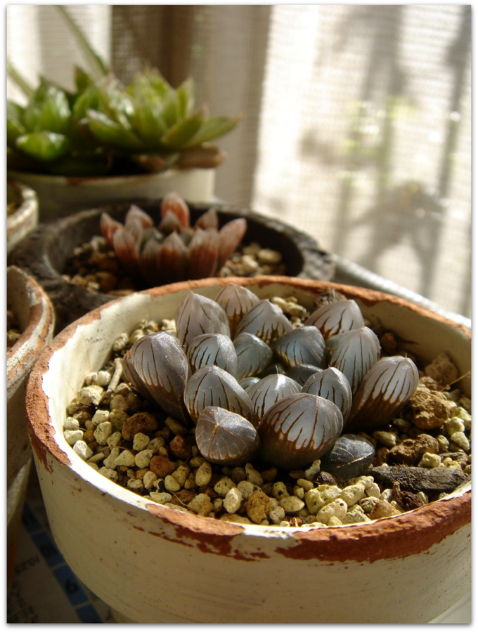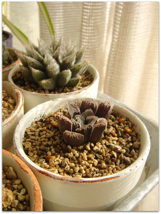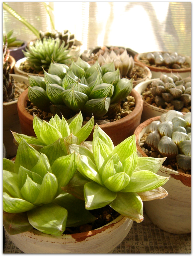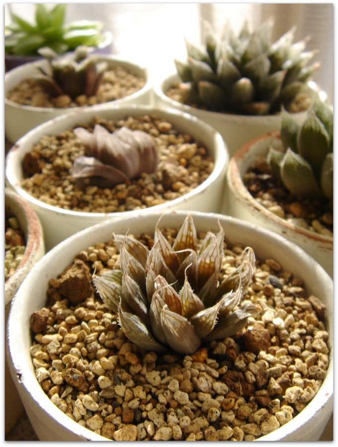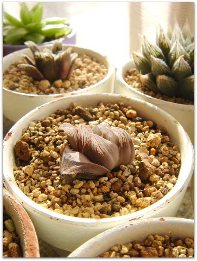 戸外のハオルシア系の多肉たちを、