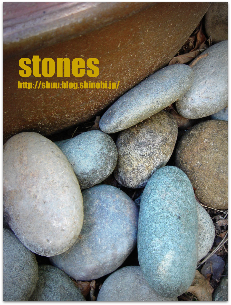 右のほうに転がってる石は、庭に元からあった、かなり大きなもの。今、使う場所を再検討中。