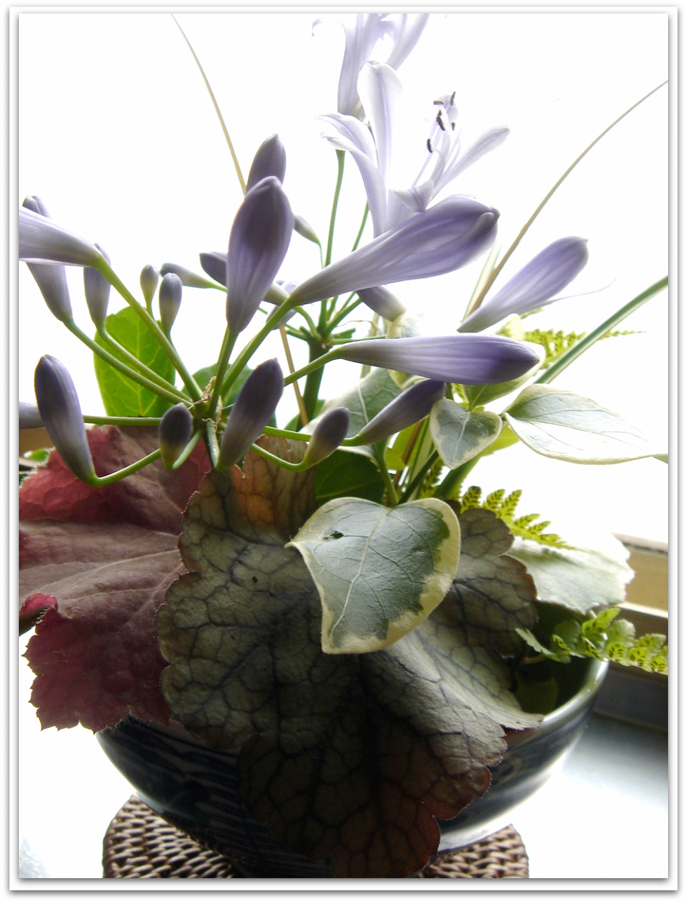 ←先週末、庭の植物オンリーで、小さなアレンジを作って、父の病室に持っていきました。