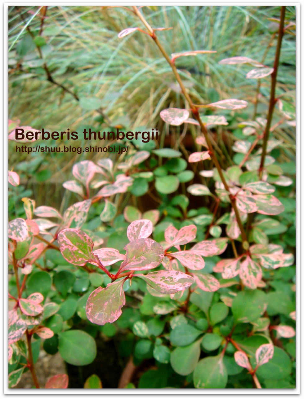 右側の赤い葉は、『アメリカイワナンテン レインボー』の新芽で、
