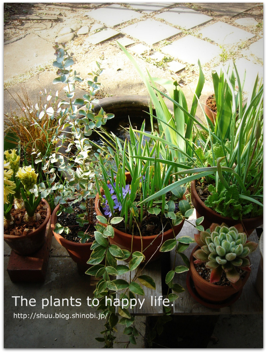 ↑の窓のすぐ外には、今が旬の鉢植えを並べて、ニヤニヤしております。