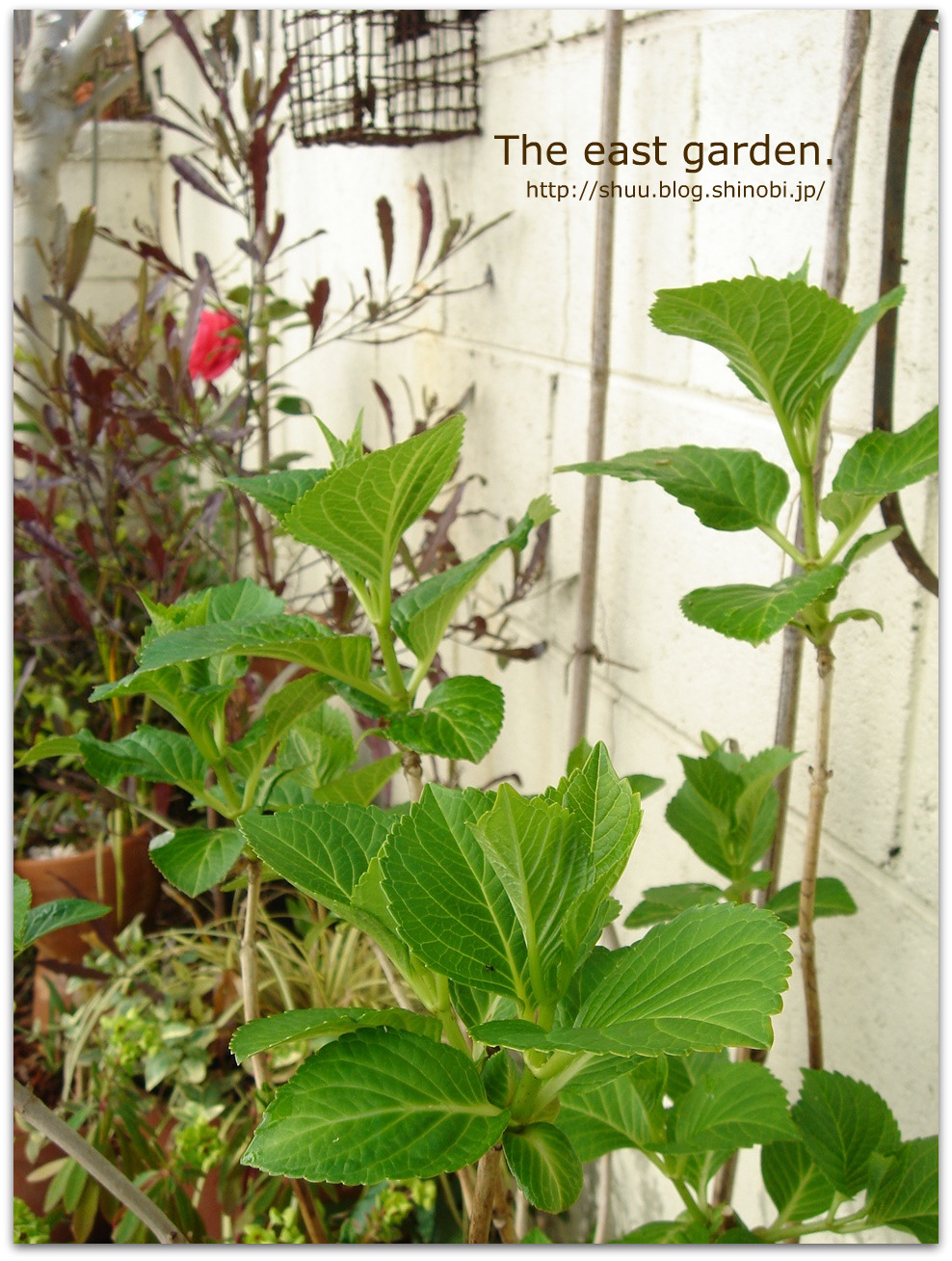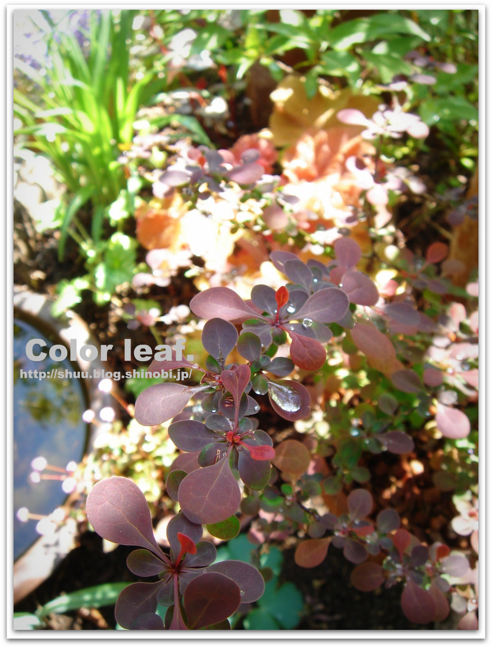 真ん中の木、『ドドナエア』が、冬仕様の紫色から、また、緑色の葉に戻りつつあります。近くで見ると、そのグラデーションも美しいっす。。