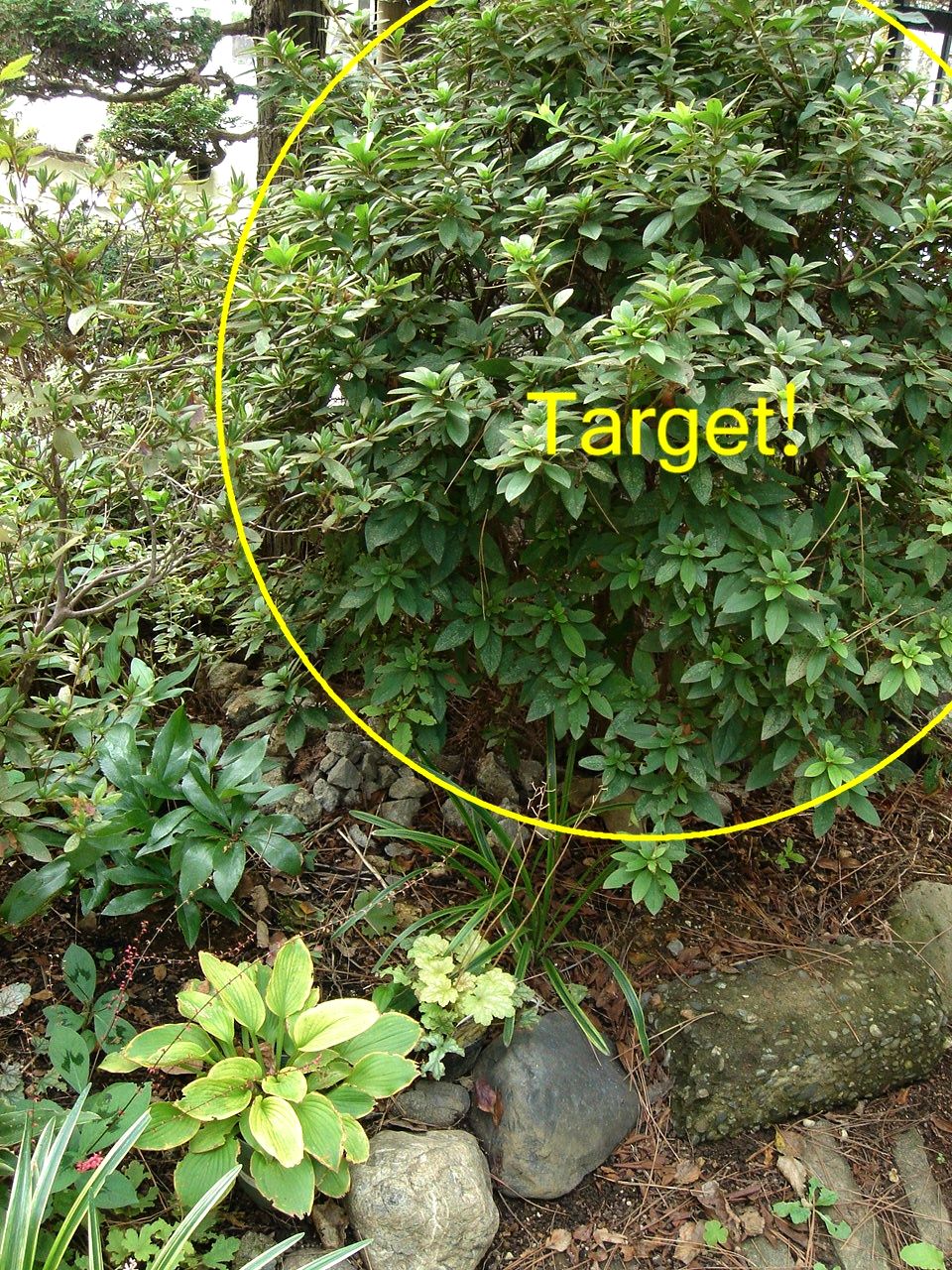 →和モノ常緑樹の『イトヒバ』の下。