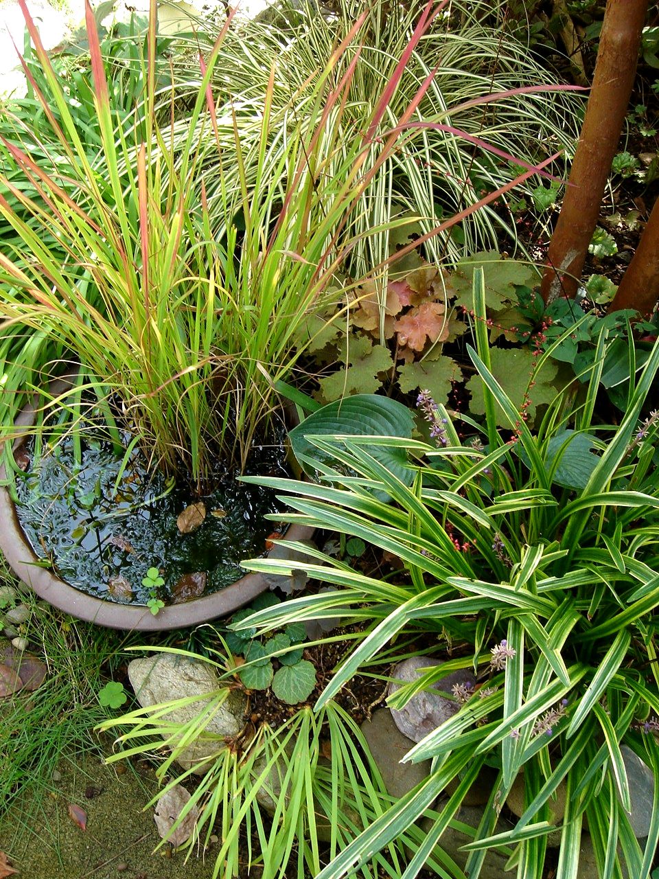 (細長い葉はいつもの斑入り『ヤブラン』)