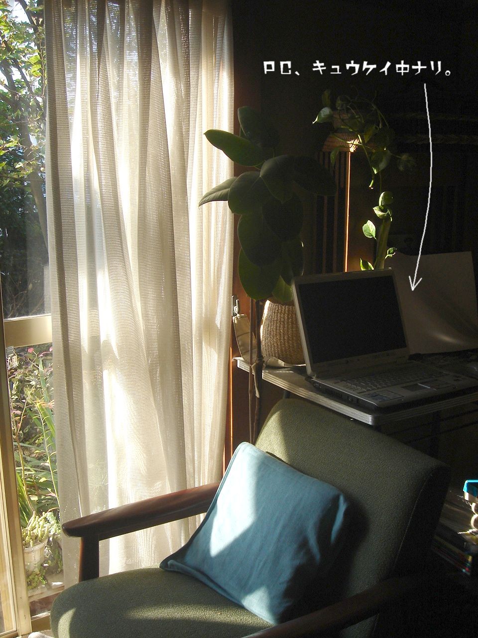 朝、だいぶお日様が傾いて、PCの机まで日が差し込むようになってました。