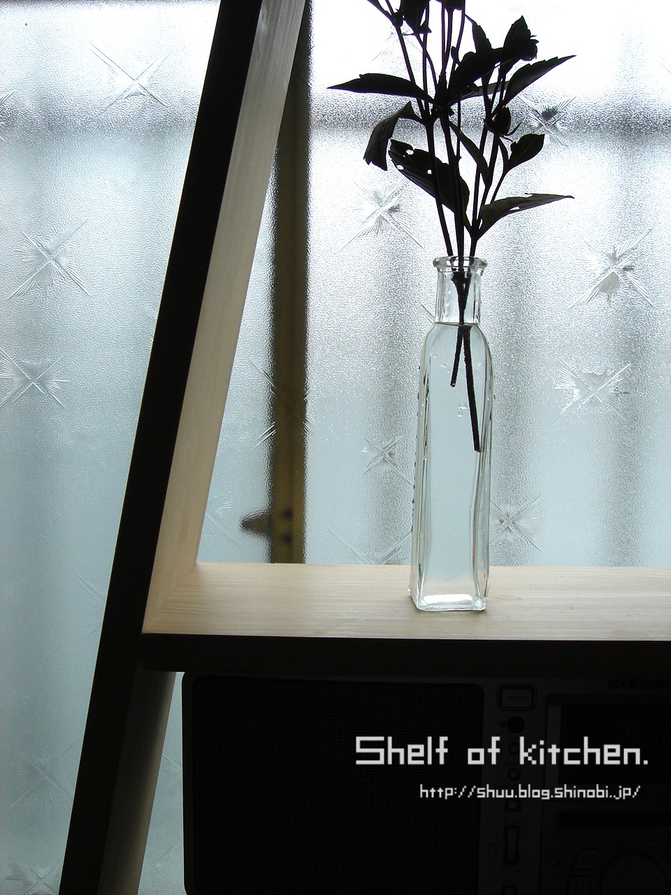 キッチンの窓辺に、棚を作ってますと、前回書きましたが、ええ、ええ、まだ作りかけで。(゜ー゜;Aアセアセ