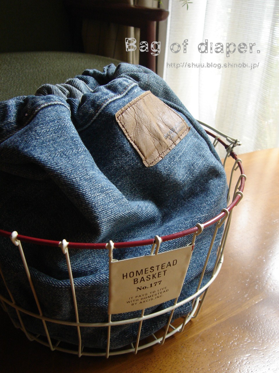 今まで、友達ママたちからの出産祝いにもらったカゴ(お洋服が入ってました^^)に、そのままピンク色のオムツを入れてました。で、居間にドンっと。。(゜ー゜;Aアセアセ