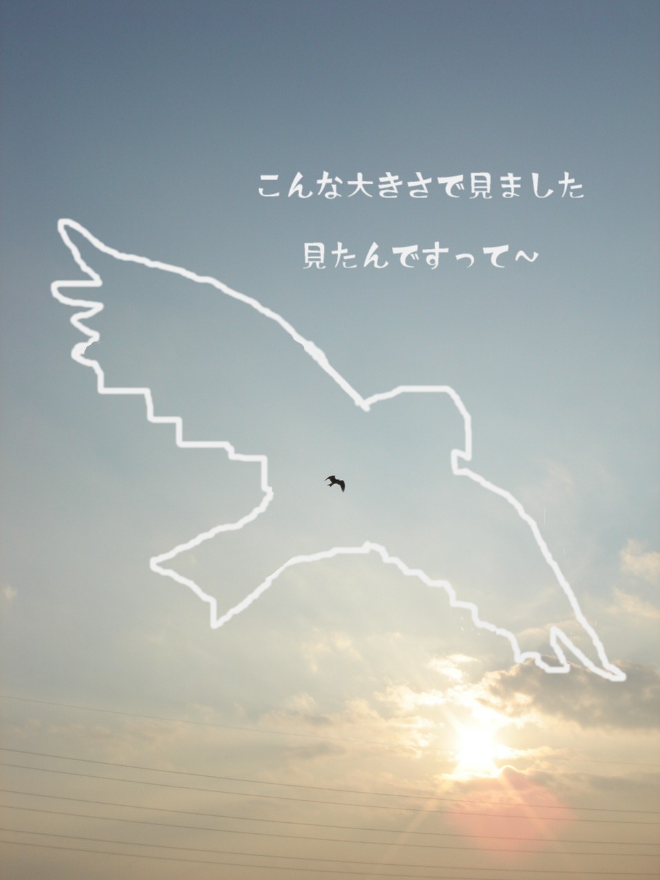 白サギの群れの横を通ったあと、すぐ頭上に大きな鳥がフワリと・・・カラスかと思ってみたら、