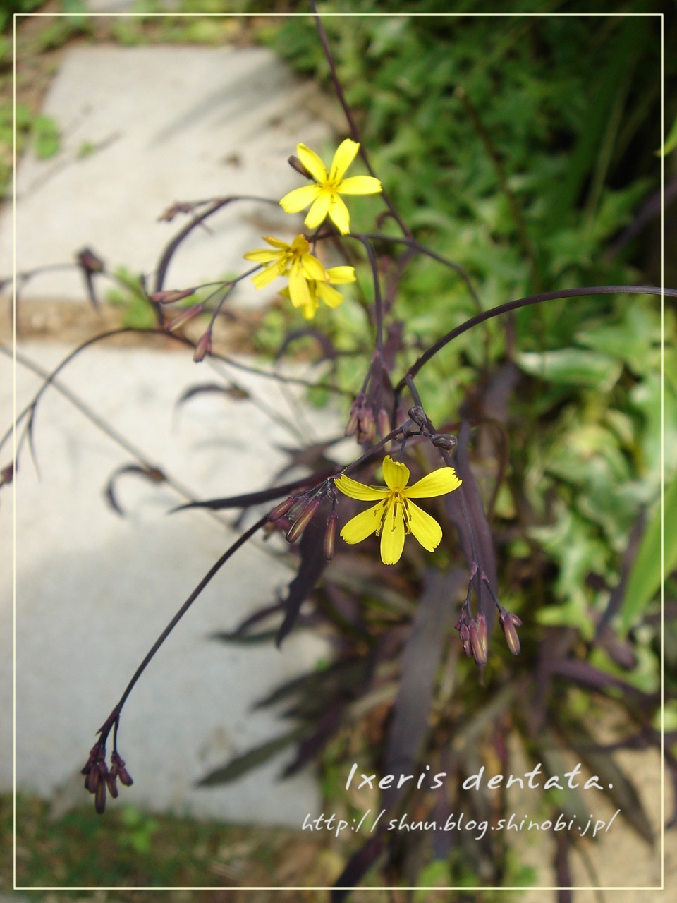 庭では『カラスバニガナ』(黒ニガナ・黒葉ニガナ)が咲き始めました。