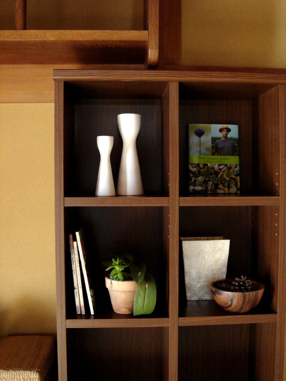 →撮影用に、ありあわせのモノで飾ってみましたが、こんな状況ありえません。本などで埋まる予定。