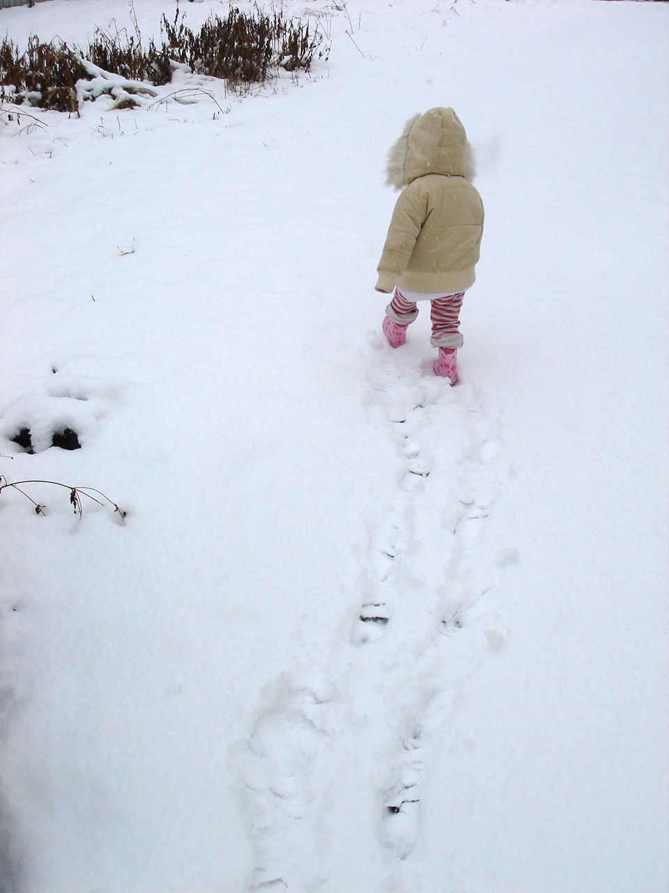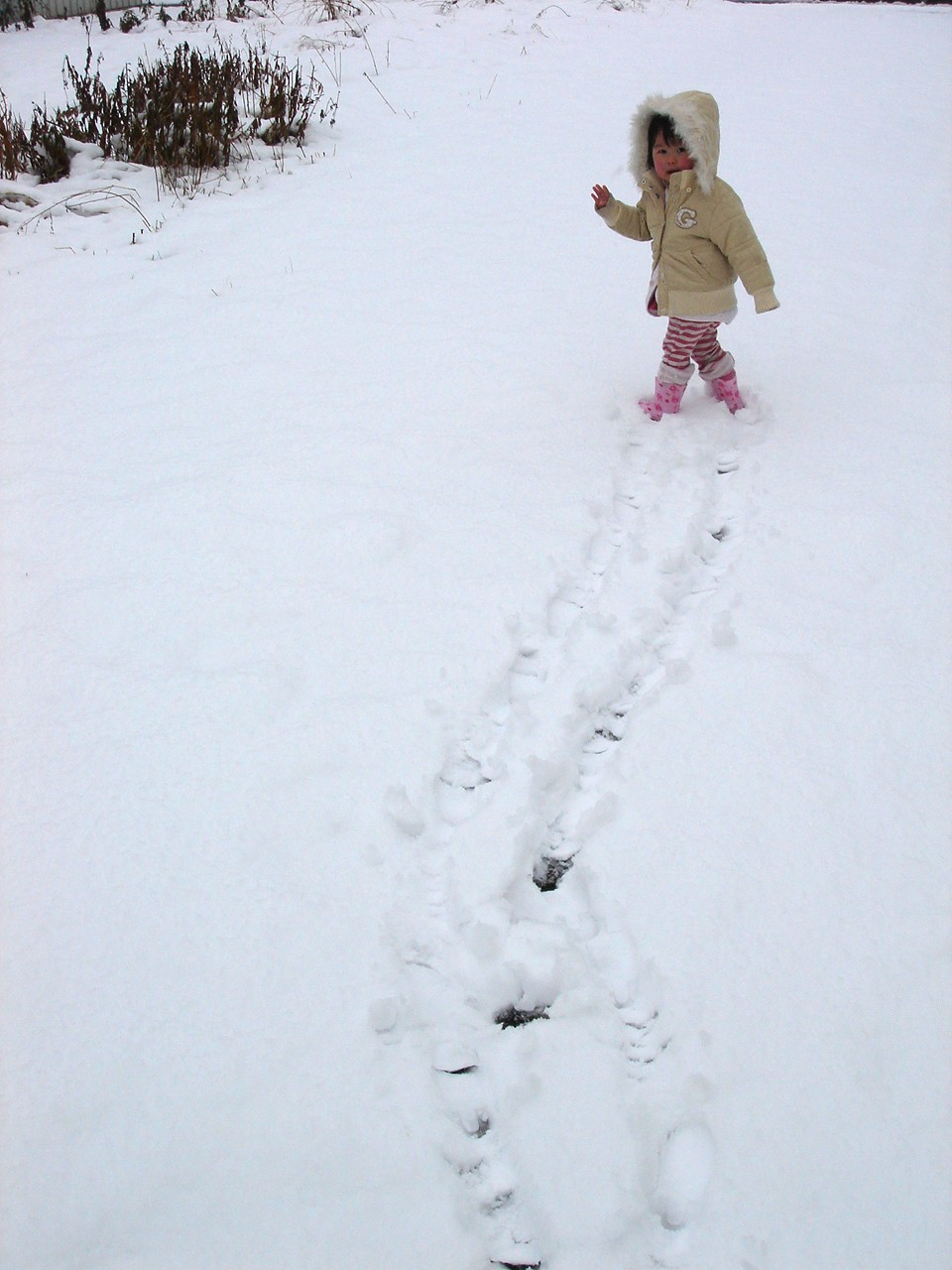 雪だろうとなんだろうと、お外へ出たくてしょうがないチビ。