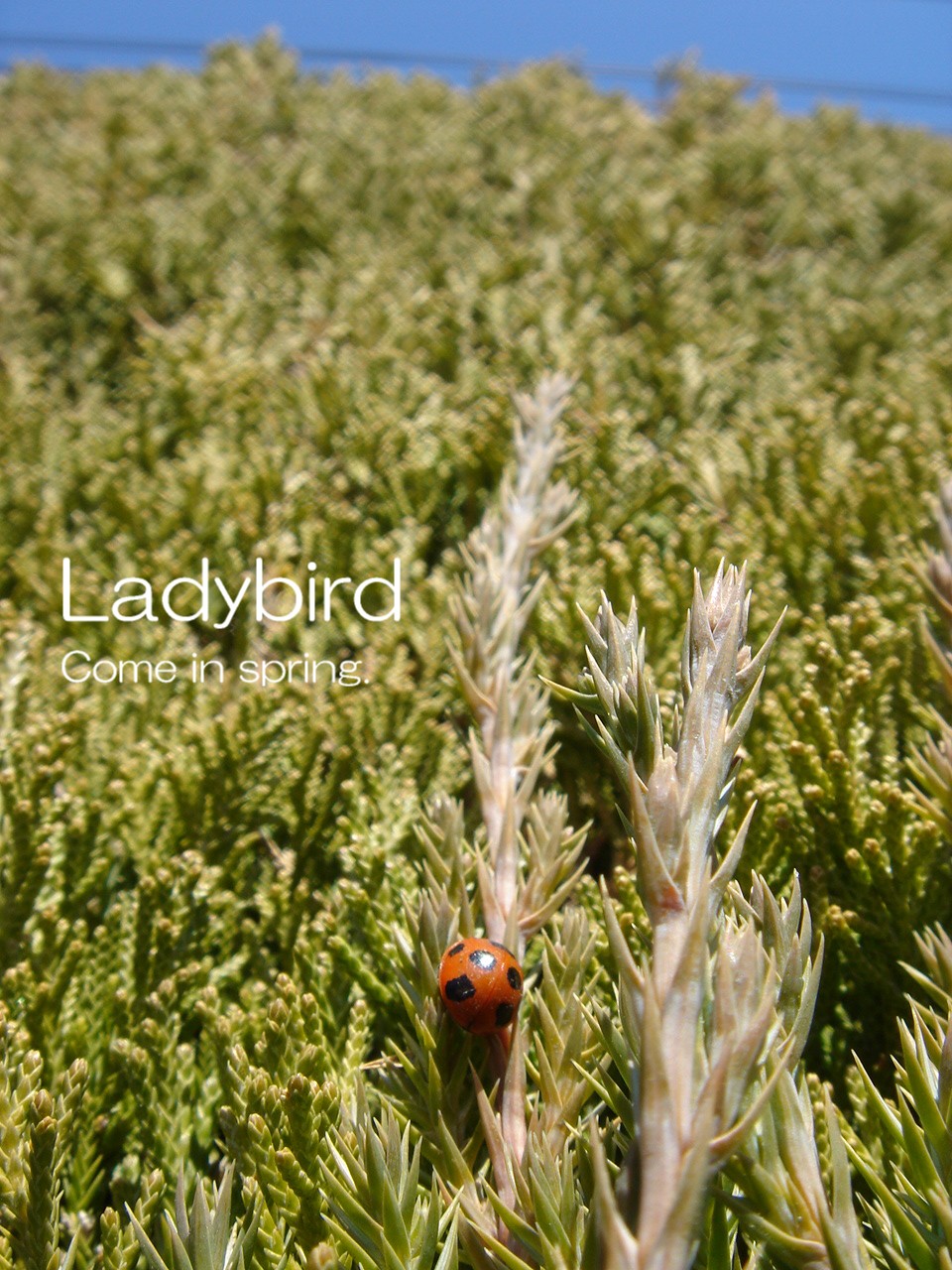 ←散歩で通りかかったお宅。キレイに刈り込まれたカイヅカイブキの垣根で、てんとう虫が日光浴。