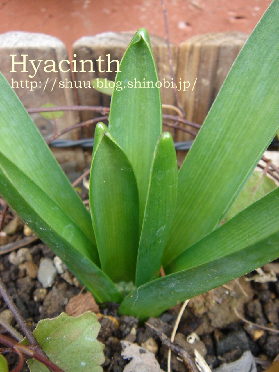 こ、これは、去年、水栽培した『ヒヤシンス デルフト・ブルー』ではないですか!そうでした、花が終わったあとの球根を、庭に植えてたんでした。(すっかり忘れてました(゜ー゜;A)