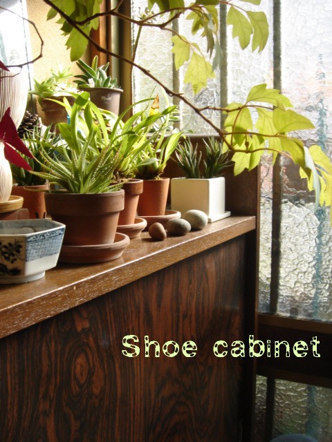 今までは外の半日陰に、これからは玄関で。