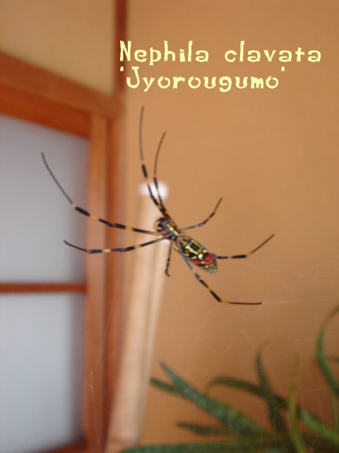 そうそう、いつも玄関の外の通り道、顔の高さにバーンっと迷惑な巣を作っていた「女郎蜘蛛」。