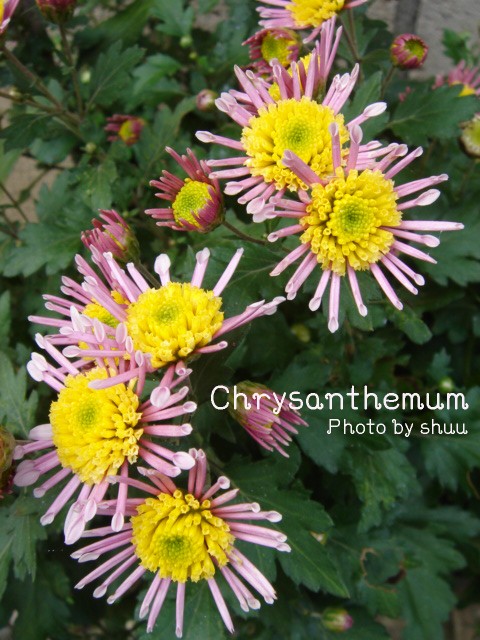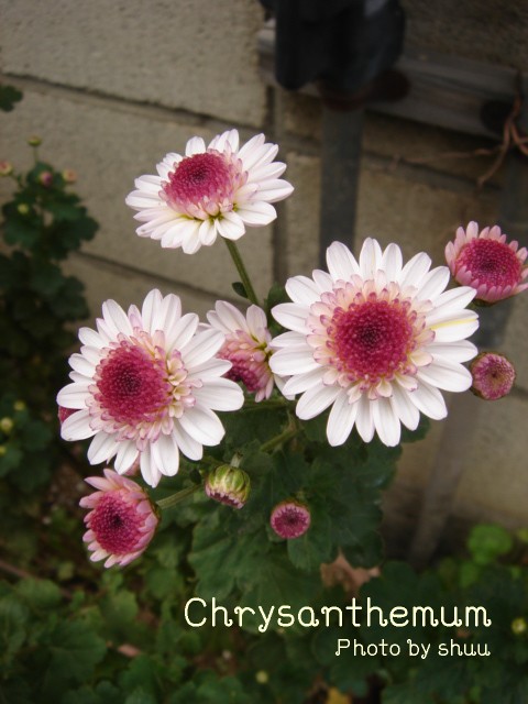 前回、アレンジで使ったような小型の菊が、気にして見ると、あちこちの家の軒先に植えられていました。
