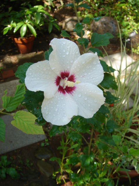 ちなみに、鉢の台にしてるのは、以前記事にもしましたが、拾った錆びた傘立て。(あ、エレガントが・・・)