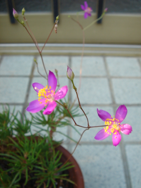 →Talinum calycinum. 『草花火』(くさはなび)の花も咲いています。ちなみに原産地、アメリカ南西~メキシコ。
