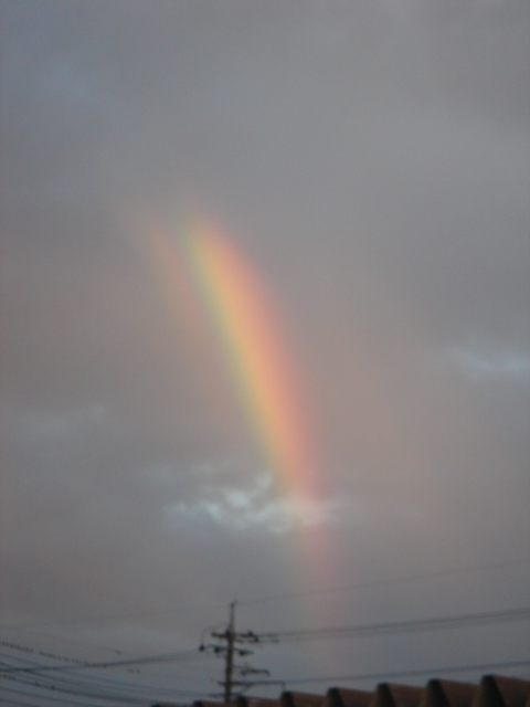 おとといの日が暮れる直前、とても大きな虹が見えました。→