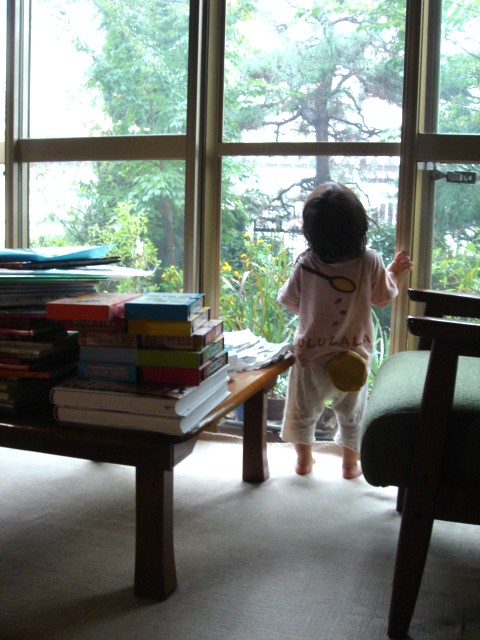 太陽が出たり、雷が鳴り、庭が池になるほどのおそろしい量の雨が降ってきたり・・・と、不安定な天気。