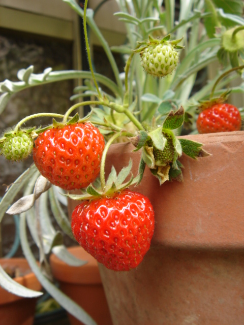 ■ そして、違う鉢ですが、同じ培養土を使って植えた『イチゴ』(すでに子供達のお腹の中)