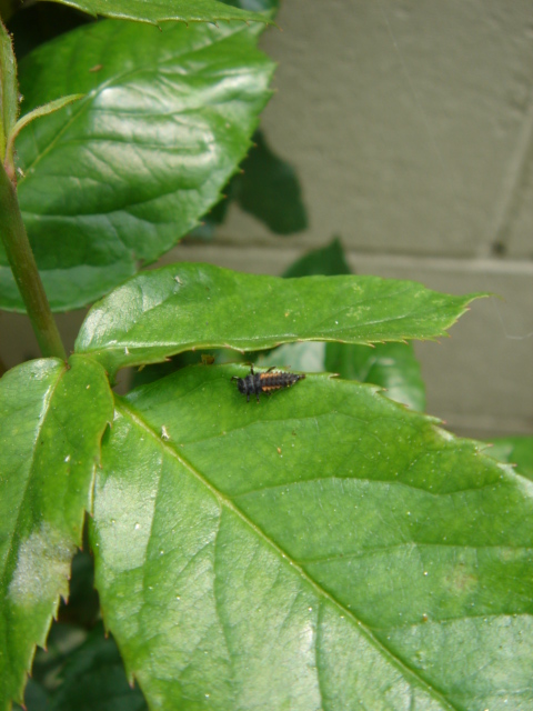 ←この、デンジャラスな外見の頼りがいのあるちっこい虫・・・これが、テントウムシの幼虫です。