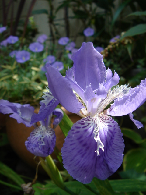 せっかく咲いたので、外から見て一番目立つところ『イチハツ』のお隣りへ・・・・