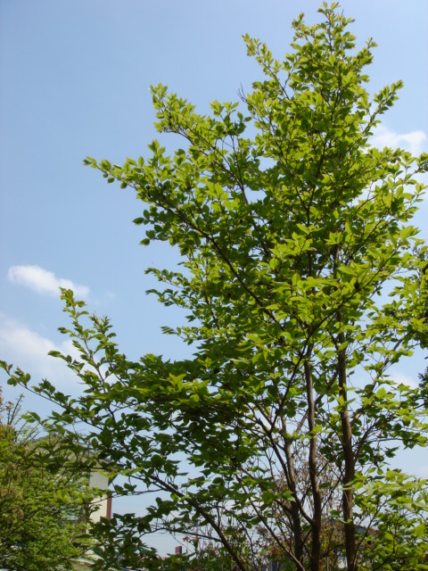 ・・・本当は樹幹が広がる木を植えるつもりだったのですが、「植木市」で出会ったこの木の小さな葉具合が気に入ってしまって、マイカーに積んで帰ってきたのが数年前。