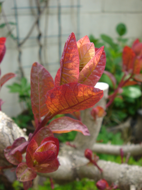 『スモークツリー ロイヤル・パープル』の新芽。→