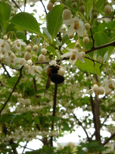 その中でもブーンという大きな羽音でひときわ目立つ、黒くて大きな『クマバチ』↓