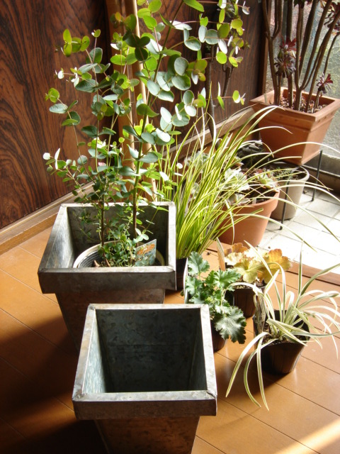 後ろの大きな゛かめ゛は、相方実家で、底が割れて、裏庭に打ち捨てられていたものをもらってきたもの。(やっぱり)