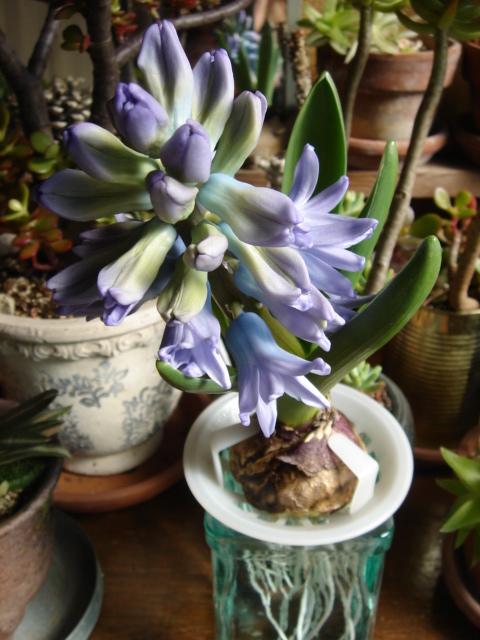 ←そしてこれは、室内で水栽培中のヒヤシンス。
