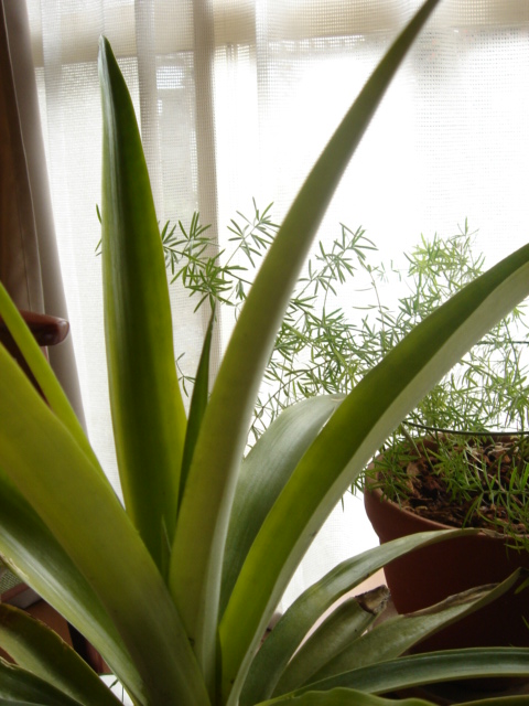 ということで、←食べたパイナップルの鉢植え。(2年目)