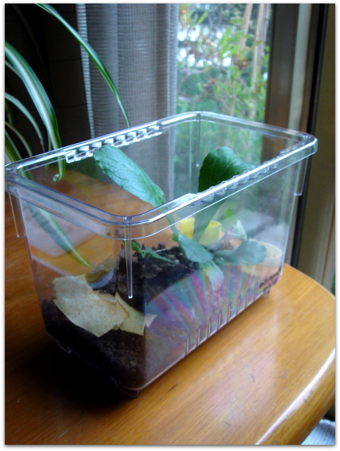 ←100均の虫ケースで2週間ほど我慢してもらい、