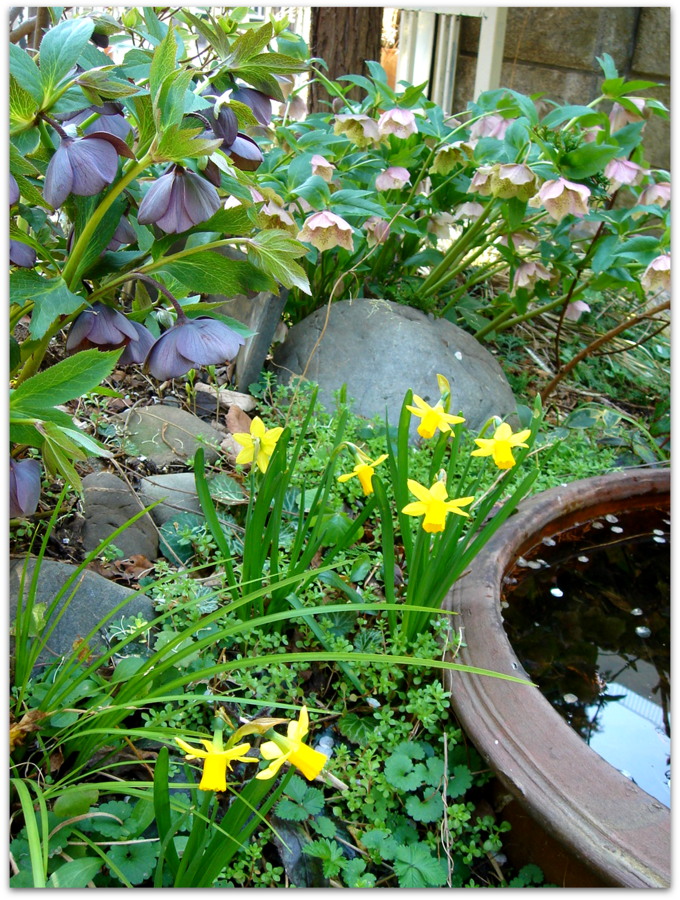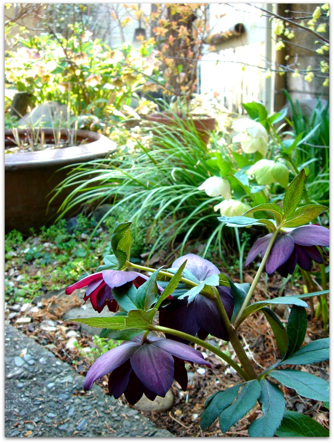 ←ヘレボラス(クリスマスローズ)たちが、最高の見頃。