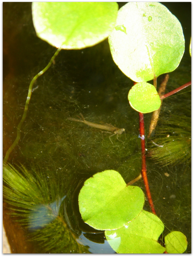 ←水の中に、まるで、チビカマキリのような、小さいやつがいる、、