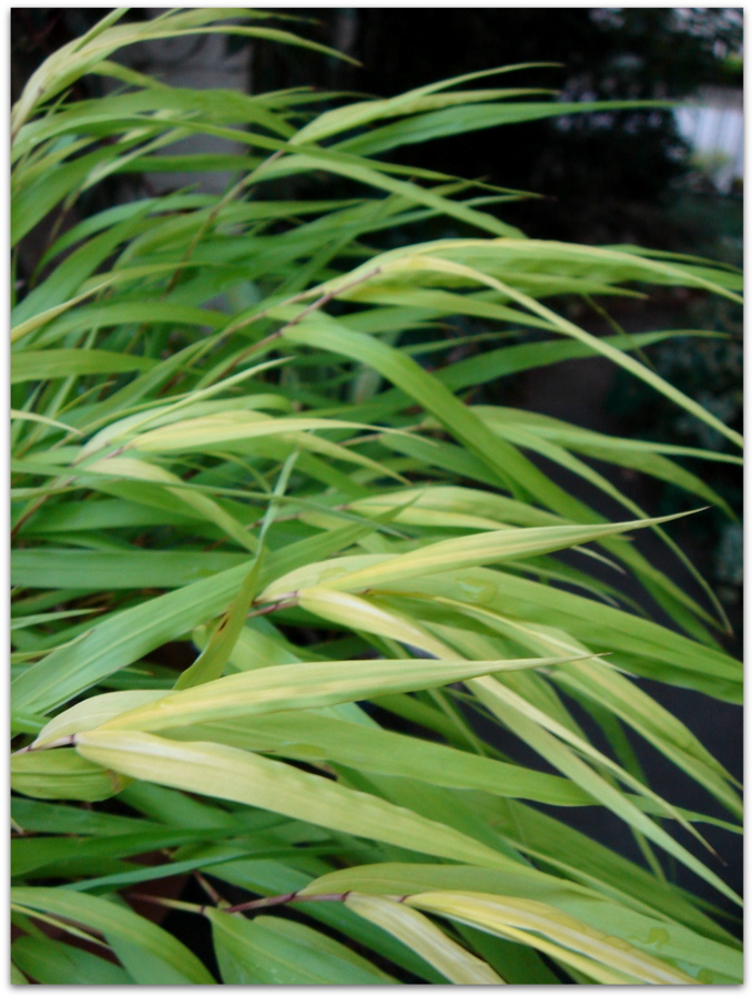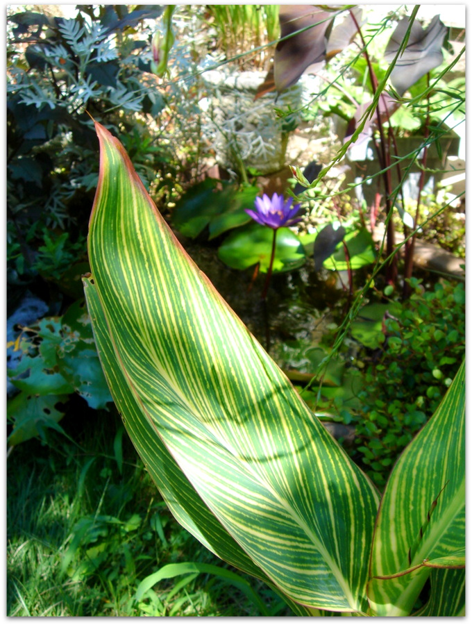 背後のスジスジの葉っぱは、