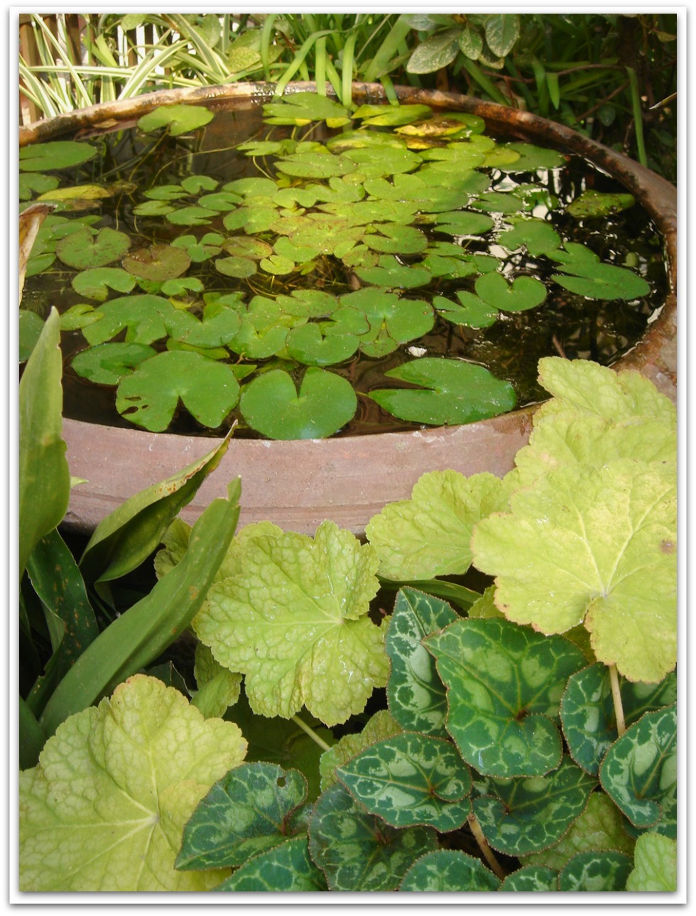震災のとき、この睡蓮鉢、ザッバンザッバンと大波を起こして、水が半分くらいになるほどこぼれたんです。