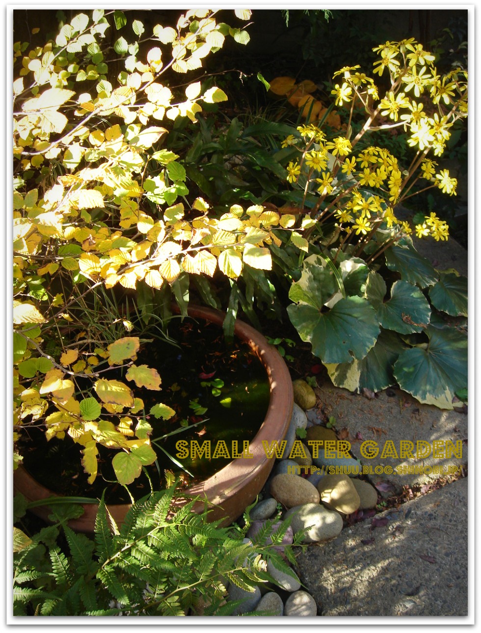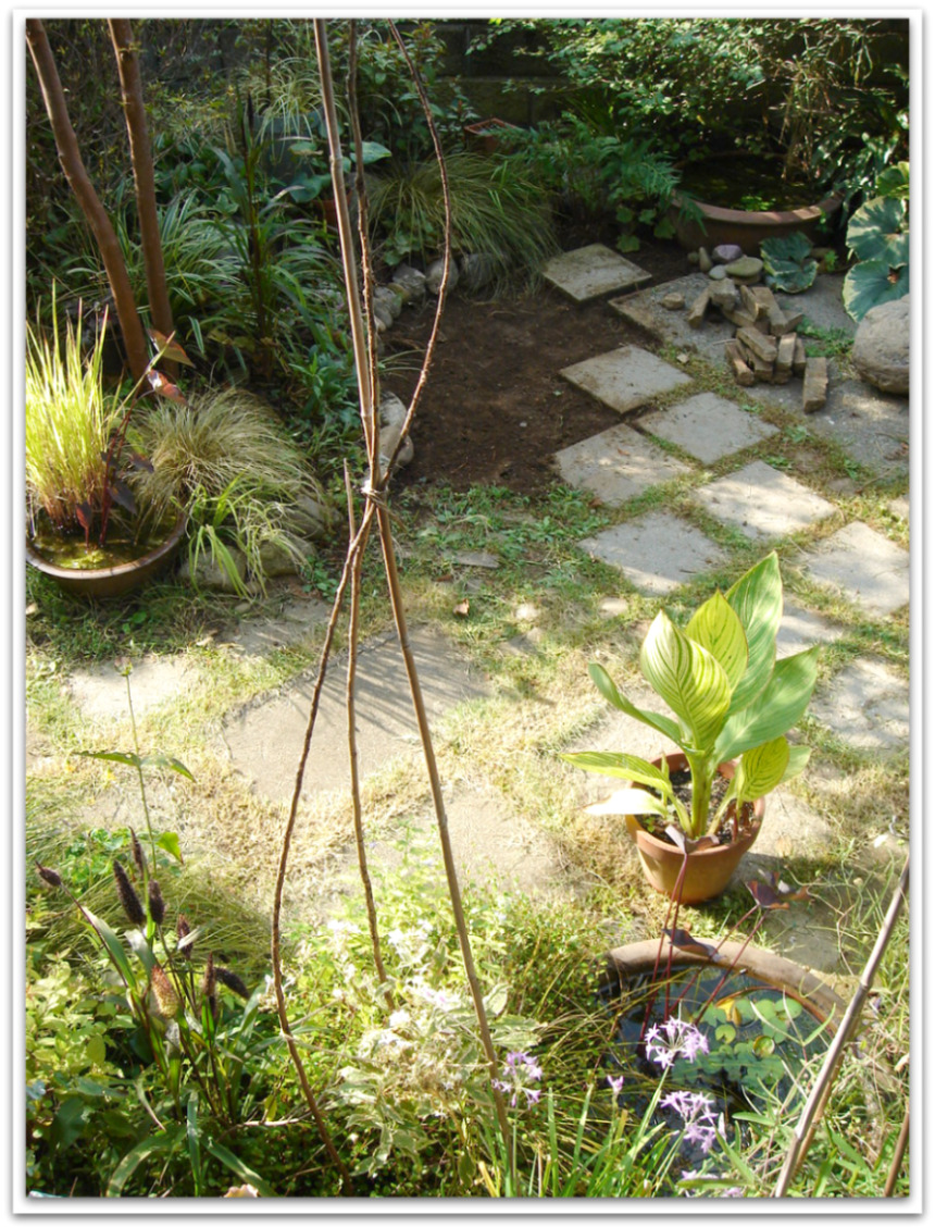 →家側の、日当たりの「睡蓮鉢」周辺。