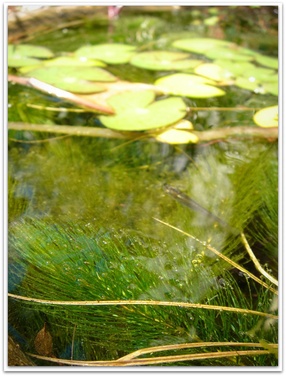 ←こちとら、睡蓮鉢の中の、水草(キンギョモ)が、