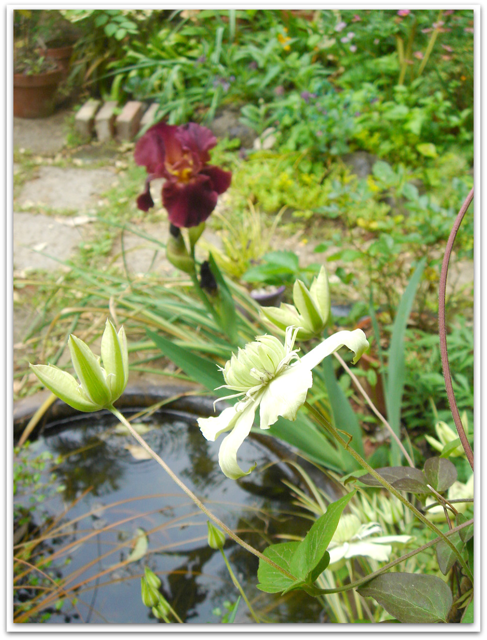 →クレマチス『白万重』が咲きだしました。