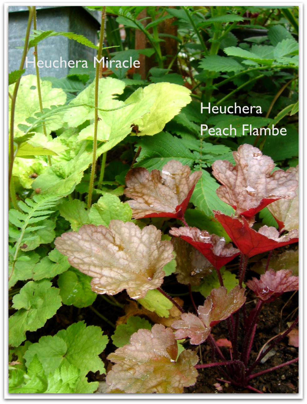 左側の黄色いのは、『ヒューケラ キャラメル』で、
