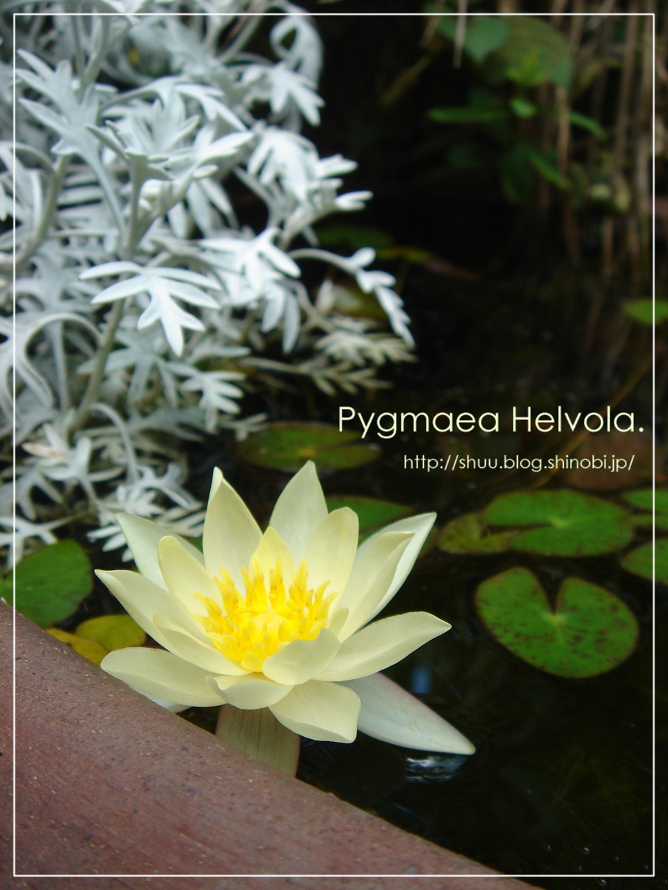 後ろの葉っぱは水鉢の中の、『ベニチガヤ』