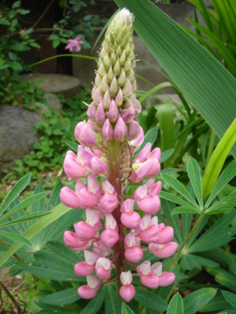 その寄せ植えは、今はラナンキュラスは終わり、娘の選んだピンク(やっぱり…)の『ルピナス』がキレイに咲いています。→