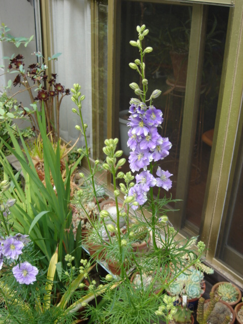 南側の庭では、数日前はまだ蕾だった『ラークスパー』が咲いています。→
