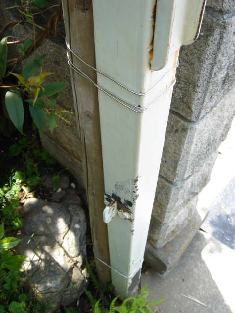 支柱は、門扉の柱に、ステンレスの針金で留めてあるだけ。